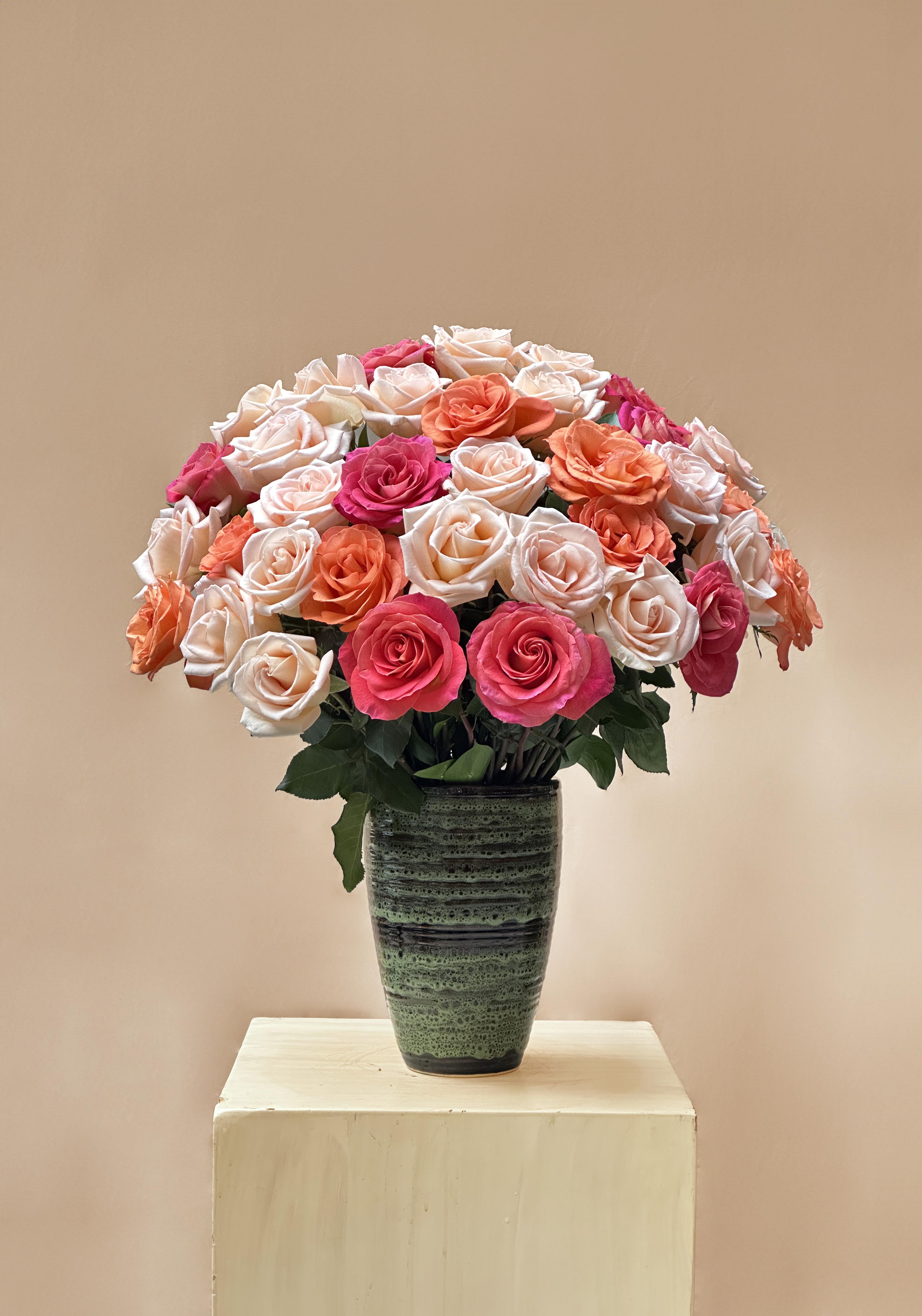 Imagen de referencia: este florero contiene el máximo número de rosas, todas en su punto de mayor apertura.