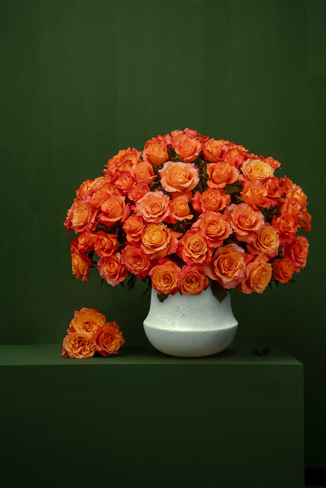 Imagen de referencia: este florero contiene el máximo número de rosas, todas en su punto de mayor apertura.