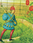 Ilustración de un manuscrito del siglo XIV, del Roman de la Rose, el primer poema sobre la rosa.