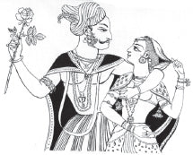 Nur Mahal, princesa India, y su esposo el Gran Mogol. Ella fue, la primera en descubrir el arte de fabricar esencia de rosas. Siglo XV.