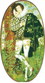 Retrato de un galante romántico del siglo XVI, en un jardín con rosas.